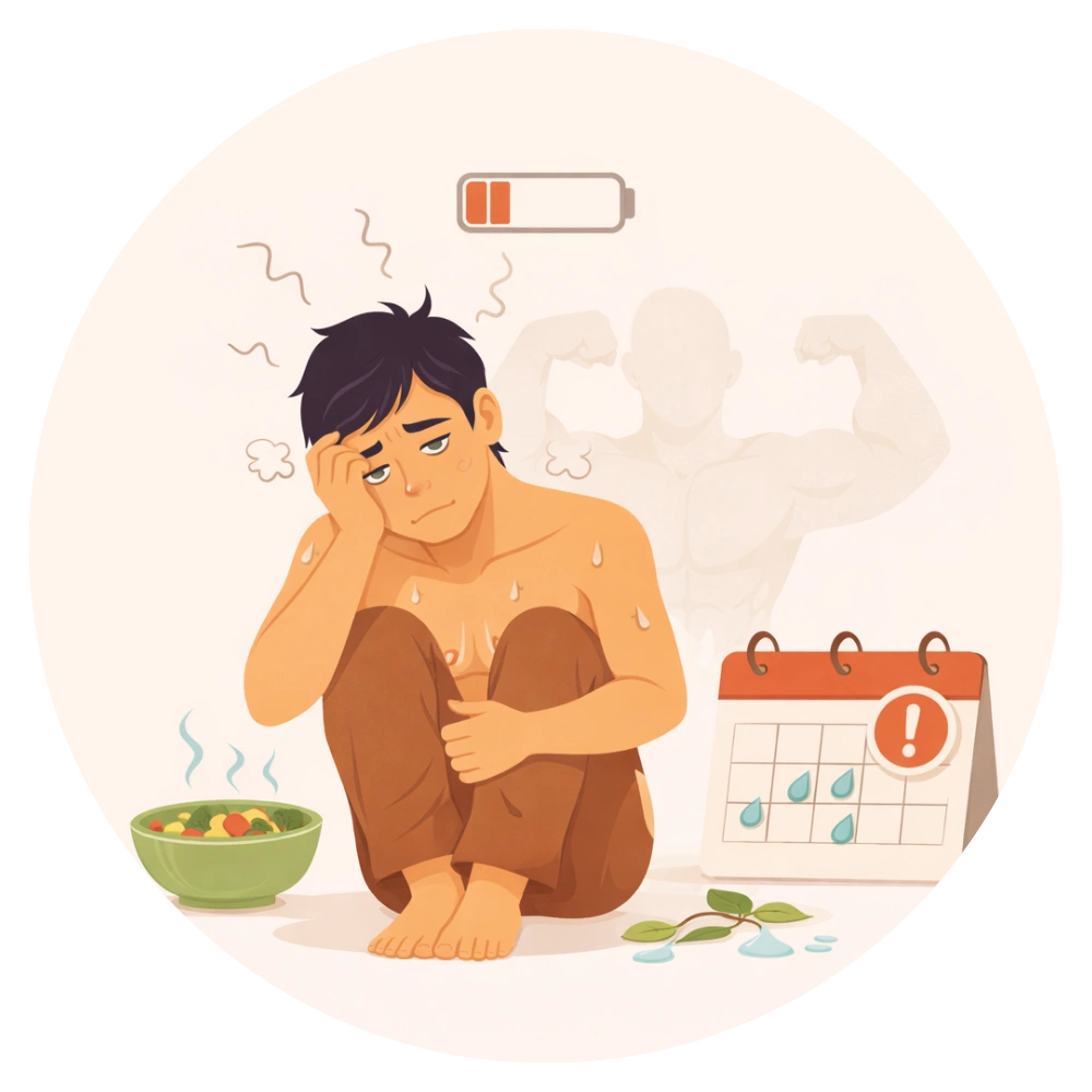 - हल्की मूंग दाल + seasonal सब्जियाँ (पालक, मेथी, तोरई) – पाचन और sexual vitality दोनों को support करती हैं।