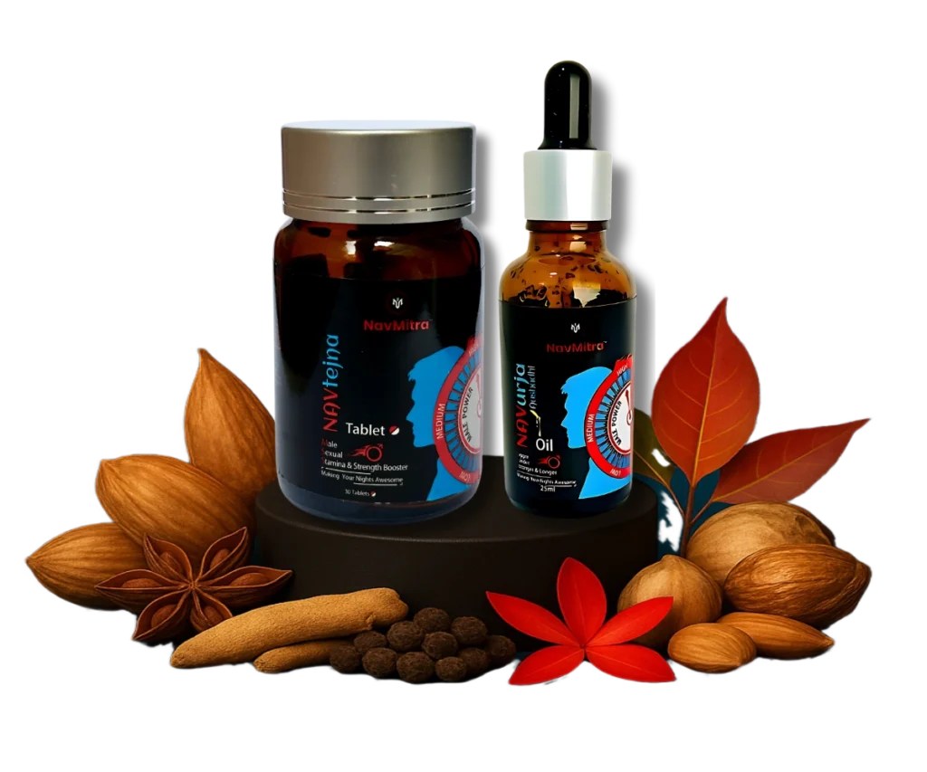 - दोहरी शक्ति और सहनशक्ति – नवतेजना टैबलेट्स के स्वर्ण भस्म जैसे तत्व शारीरिक शक्ति बढ़ाते हैं, जबकि नवुर्जा तेल बादाम और केसर के गुणों से प्रदर्शन को गहराई से मजबूत करता है।