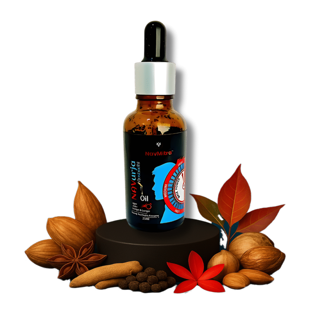 Navurja Aushadhi Oil पुरुषों की नसों की कमजोरी, कमज़ोर इरेक्शन (Erectile Dysfunction), ढीलापन (Low Thickness) और उत्तेजना की कमी जैसी समस्याओं में लाभकारी है। नियमित उपयोग से Blood Circulation, Thickness, Hardness और Performance में तेज़ सुधार देखा जाता है।